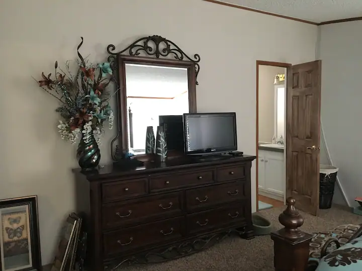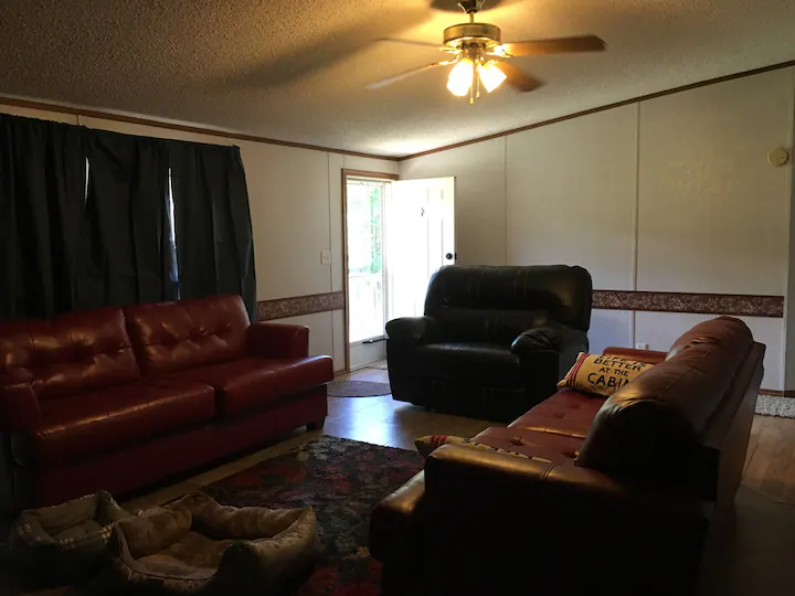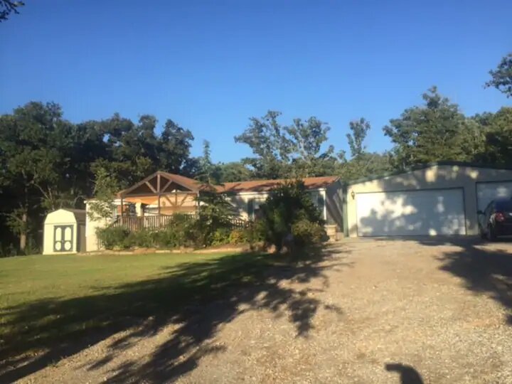 Beautiful fully renovated mobile home on Lake Texoma. 3b/2ba. Close to marinas, casinos, and more! 1 King bed, 2 queen beds. 2 full baths. Fully equipped kitchen! Large porch w/outdoor kitchen & hammock. Outside gas grill, propane fish fryers, electric smoker. Perfect for a relaxed vacation and even extended stays. We provide nightly, weekly, & monthly rates! My place is good for couples, solo adventurers, business travelers, families (with kids), big groups, and furry friends (pets).